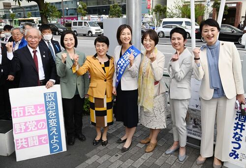 東京15区補選 酒井菜摘応援団(左から)宇都宮、櫛渕、福島、酒井、田村、蓮舫、吉田はるみ 昨日の選挙結果。 東京の目黒区長選挙は、現職が当選したようで、目黒区美術館の取り壊し再開発に唯一反対していた西崎翔候補(立憲民主党推薦)は当選成りませんで…